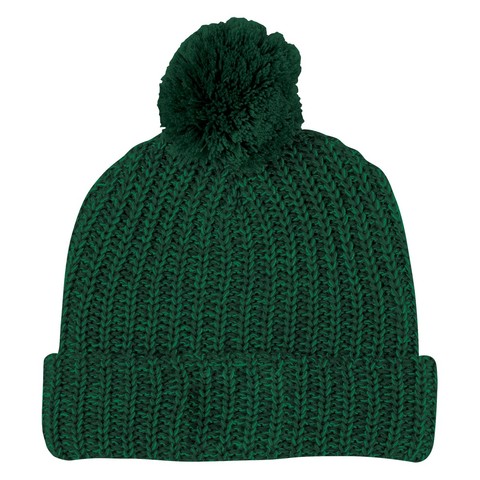 Unisex sıcak kış nervürlü örgü Bobble şapka Pom ponpon bere Roll Up manşet